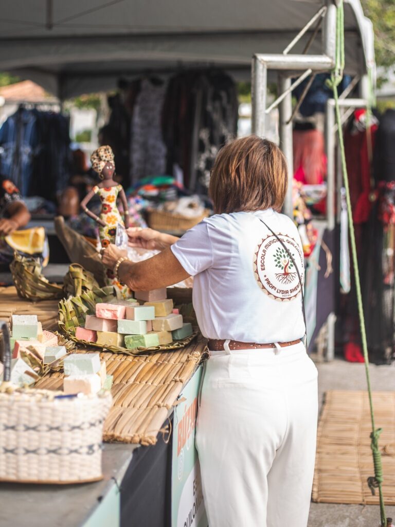 Neste fim de semana, as alunas dos cursos de artesanato das Casas da Mulher Buziana participaram de uma experiência inédita que uniu arte, turismo e consciência ambiental: o Festival Búzios Circular. O evento foi realizado entre os dias 04 e 07 de outubro, nas praças Tia Uia, no bairro da Rasa, e Dona Dita, na Ferradura.