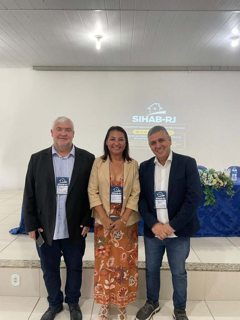Além da assinatura do Acordo de Cooperação, a secretária de Ambiente e Licenciamento de Búzios, Roseli Pereira, o subcoordenador de Habitação, Daniel Azevedo, e a assistente social Rejany Ferreira Rayder participaram do treinamento para utilização do sistema SIHAB, promovido pela equipe do Estado.