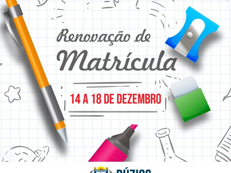 A Secretaria de Educação Ciência e Tecnologia iniciará a renovação da matrícula de alunos da Rede Municipal de Búzios de maneira online no período de 14 a 18 de dezembro.