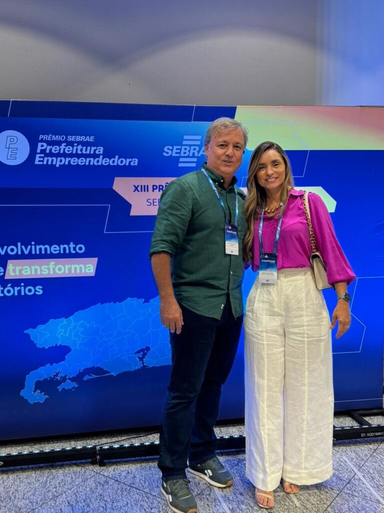 O prefeito Alexandre Martins e a primeira-dama Daniela Martins participaram da cerimônia de premiação, celebrando a conquista que reconhece o trabalho desenvolvido no município em prol da autonomia e do fortalecimento das mulheres buzianas.
