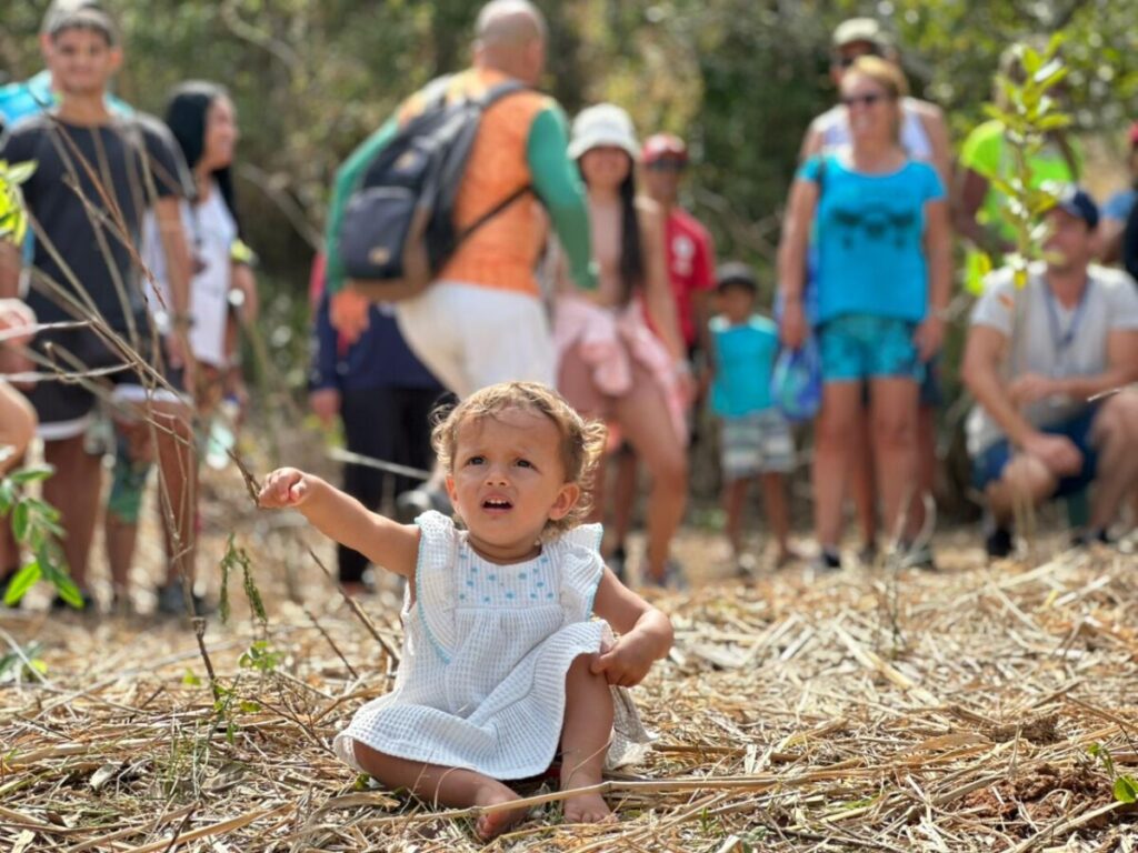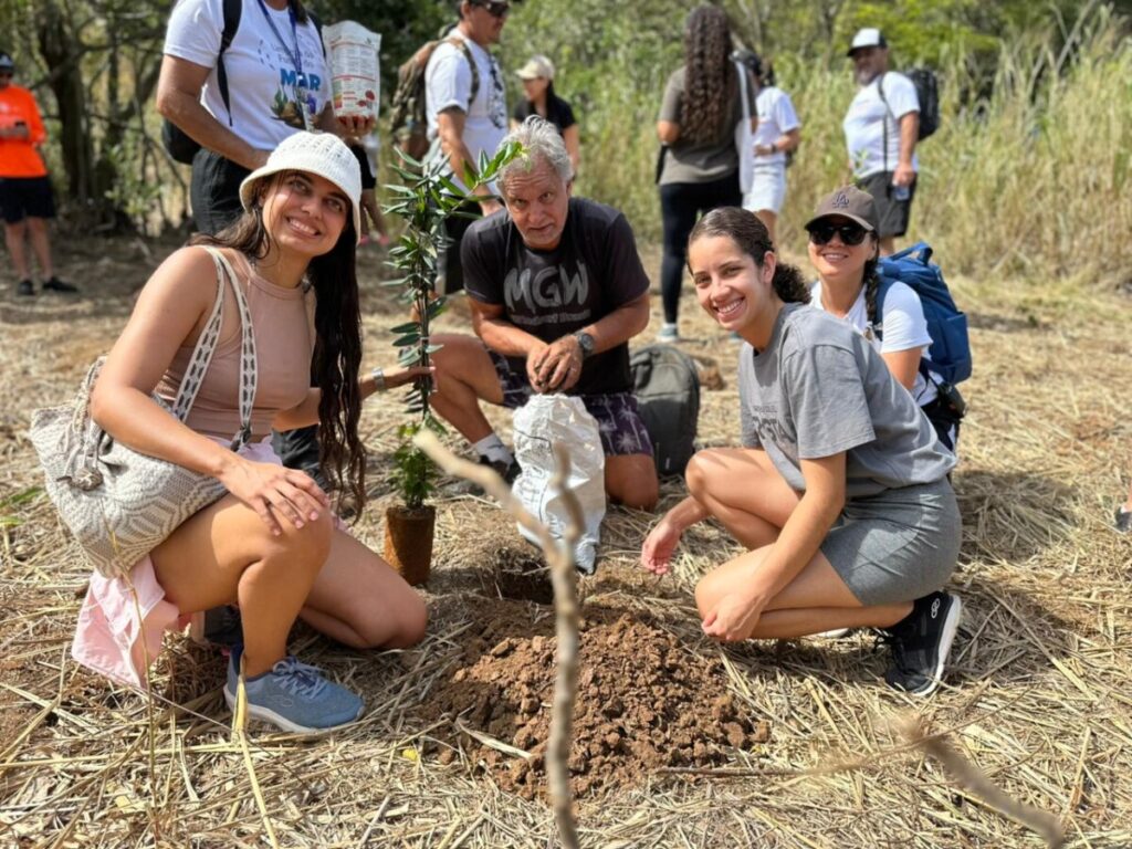 Durante o evento, os participantes caminharam por um trajeto de 3,5 km, conectando as duas praias que possuem o selo internacional Bandeira Azul. Ao final do percurso, cada pessoa recebeu uma muda de árvore, que foi plantada em uma cova previamente preparada pela Coordenadoria de Parques e Jardins do município, simbolizando o compromisso com a preservação e o reflorestamento urbano. O plantio das mudas foi realizado em duas etapas — na Praia do Forno e na Praia Azeda — totalizando 20 exemplares de espécies variadas da Mata Atlântica, entre elas pitangueiras, gabirobas, araçás-da-praia e paus-brasil.