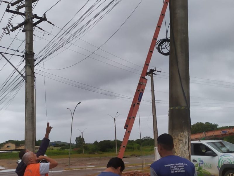 A Secretaria de Segurança e Ordem Pública de Búzios, por meio da coordenadoria de Defesa Civil foi acionada nesta segunda-feira (21) para vistoriar fios de internet com risco de soltar do poste, na entrada da Faetec, no bairro Marina. Os fios de aço que sustentam a internet estão corroídos.