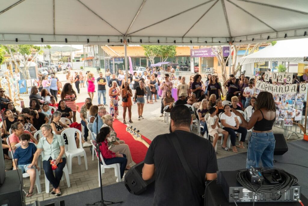 A Secretaria da Mulher de Búzios realizou nesta quarta-feira (10) o evento Celebra Mulher, na Praça Zé Paraíba, em Cem Braças, com a presença do prefeito Alexandre Martins e da secretária da Mulher, Daniele Martins. A ação marcou o encerramento anual das atividades da Casa da Mulher Buziana Martinha e celebrou a formatura de 75 alunas dos cursos de capacitação profissional.