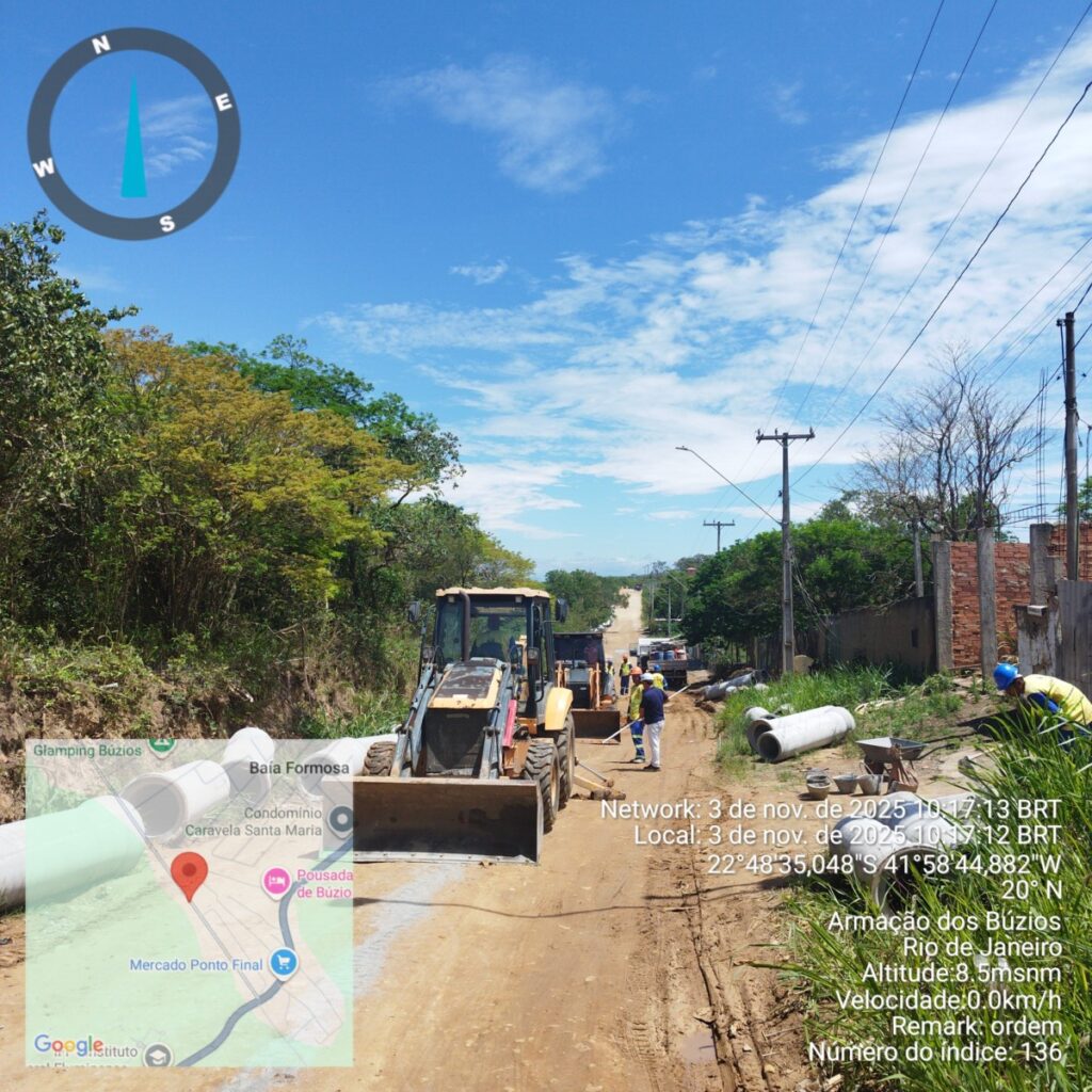 • Prefeitura de Búzios informa interdição no trânsito da Estrada da Álvaro Elídio Gonçalves, na Baía Formosa para obras de drenagem