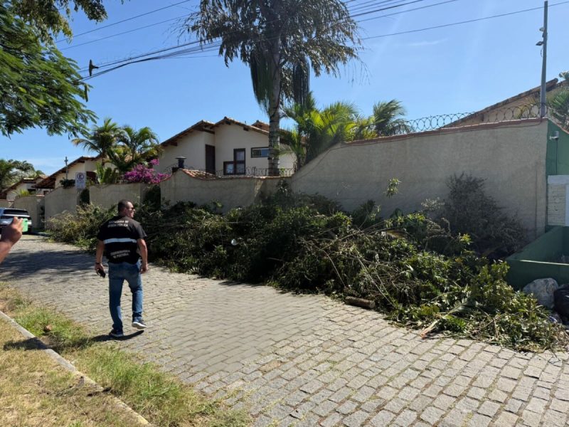 Ainda durante a ação, as equipes averiguaram uma denúncia envolvendo um condomínio em Geribá, onde foi identificada a realização de poda de árvores com descarte irregular dos resíduos em via pública. O local foi vistoriado e o condomínio notificado pela Secretaria do Ambiente e Urbanismo para a devida regularização.