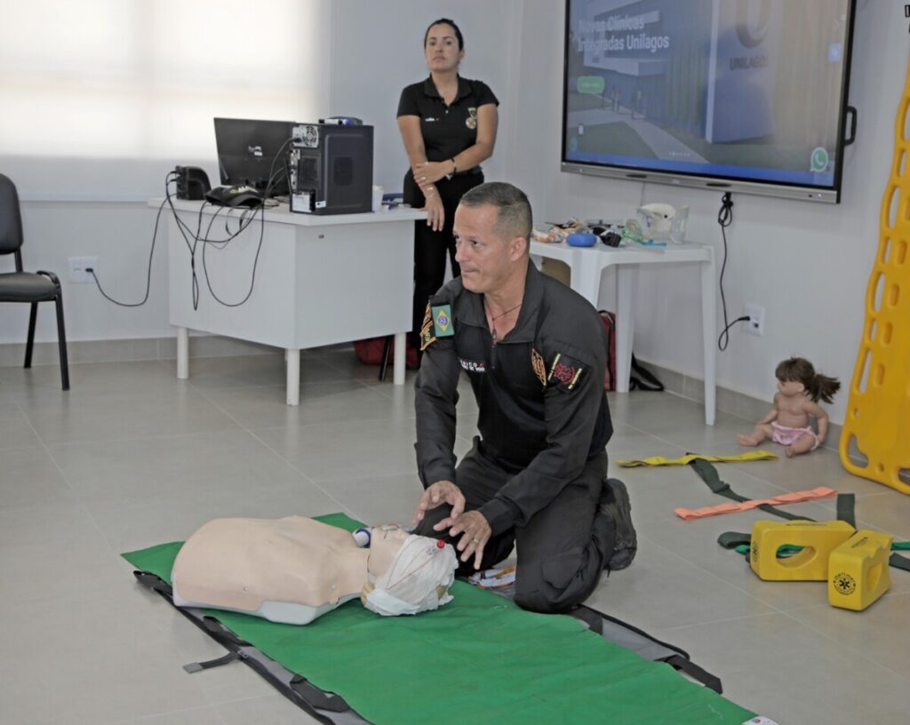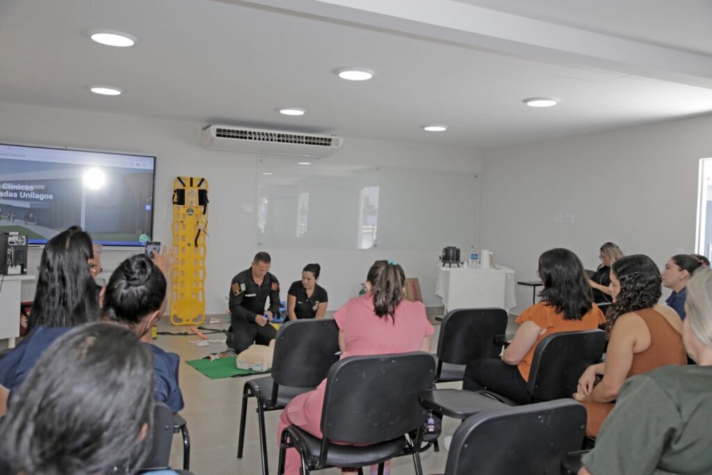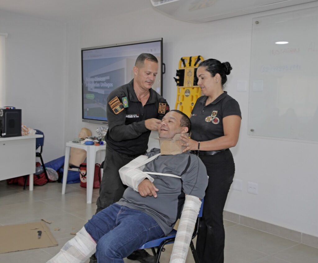 Durante o treinamento, os participantes revisaram protocolos essenciais de atendimento, incluindo avaliação da segurança da cena, identificação e abordagem inicial ao politrauma, manuseio de vias aéreas e classificação de risco. Também foram abordadas técnicas de controle de hemorragia exsanguinante, além de procedimentos como imobilização ortopédica, pranchamento, PAF, PAB e orientações finais sobre condução segura do atendimento.
