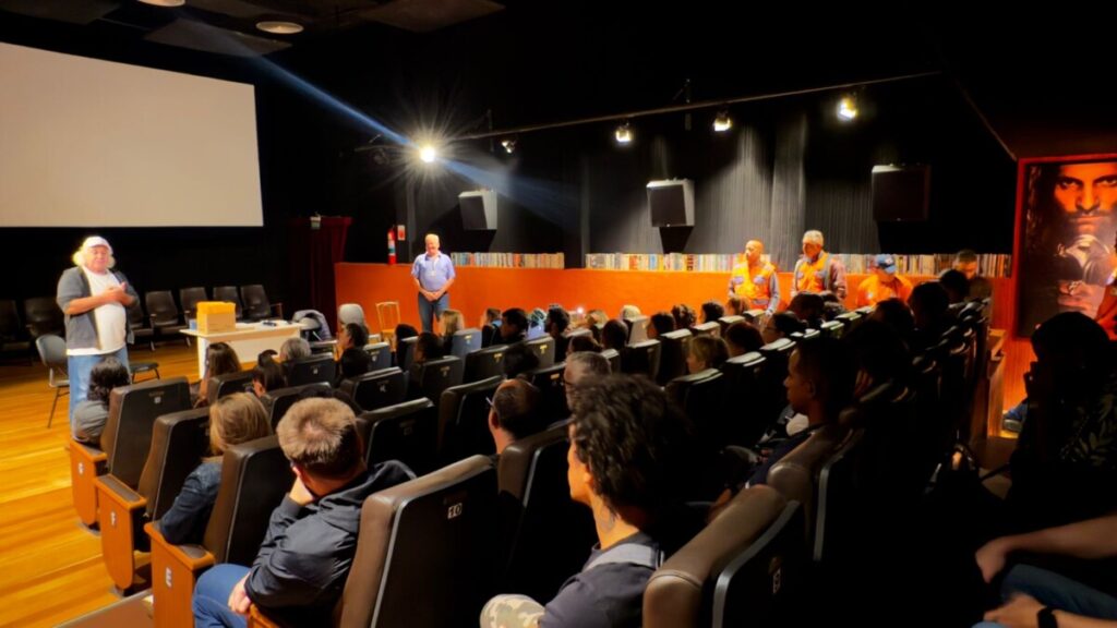 Nesta quinta-feira (30), o Cine Bardot recebeu a cerimônia de entrega dos certificados e crachás dos cursos “Condutores e Visitantes da Costa do Sol”, realizado em parceria com o INEA, e do Vivatur, promovido pelas Secretarias de Turismo e Educação, com apoio da Defesa Civil. Ao todo, 77 alunos concluíram as formações voltadas à qualificação profissional no atendimento e recepção turística em Búzios.