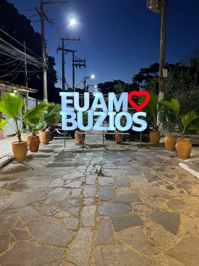A Prefeitura de Armação dos Búzios, em parceria com a iniciativa privada, implantou um novo espaço turístico com o letreiro “Eu Amo Búzios”, localizado no Centro da cidade, na Rua das Pedras. O local passa a integrar o circuito de visitação e vem sendo utilizado por moradores e turistas como ponto de registro fotográfico e valorização da identidade visual do município.