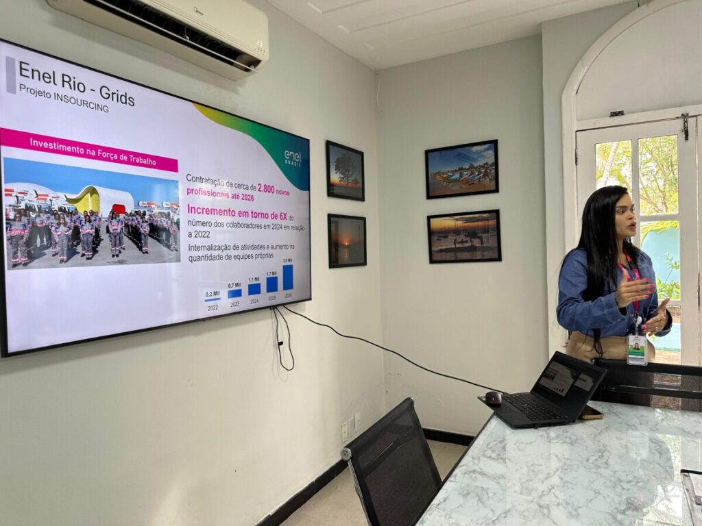 Durante o encontro, o Diretor Operacional da região Norte, José Dimas, e a Gerente Base Lagos, Thamara Montinegro, apresentaram medidas preventivas já executadas em Búzios, com foco na redução de desarmes e na melhoria da continuidade do serviço. Entre as principais ações, destacou-se a realização de um mutirão de poda em diversas regiões do município, com o objetivo de preparar a rede elétrica para o período de ventos fortes e para o aumento da demanda no verão, minimizando riscos de interrupções e reforçando a confiabilidade do sistema. Além disso, a Enel realizou a substituição de 8,5 km de cabos condutores por novos materiais com maior capacidade de condução de energia e melhor desempenho técnico, ampliando a eficiência e a segurança do fornecimento elétrico.