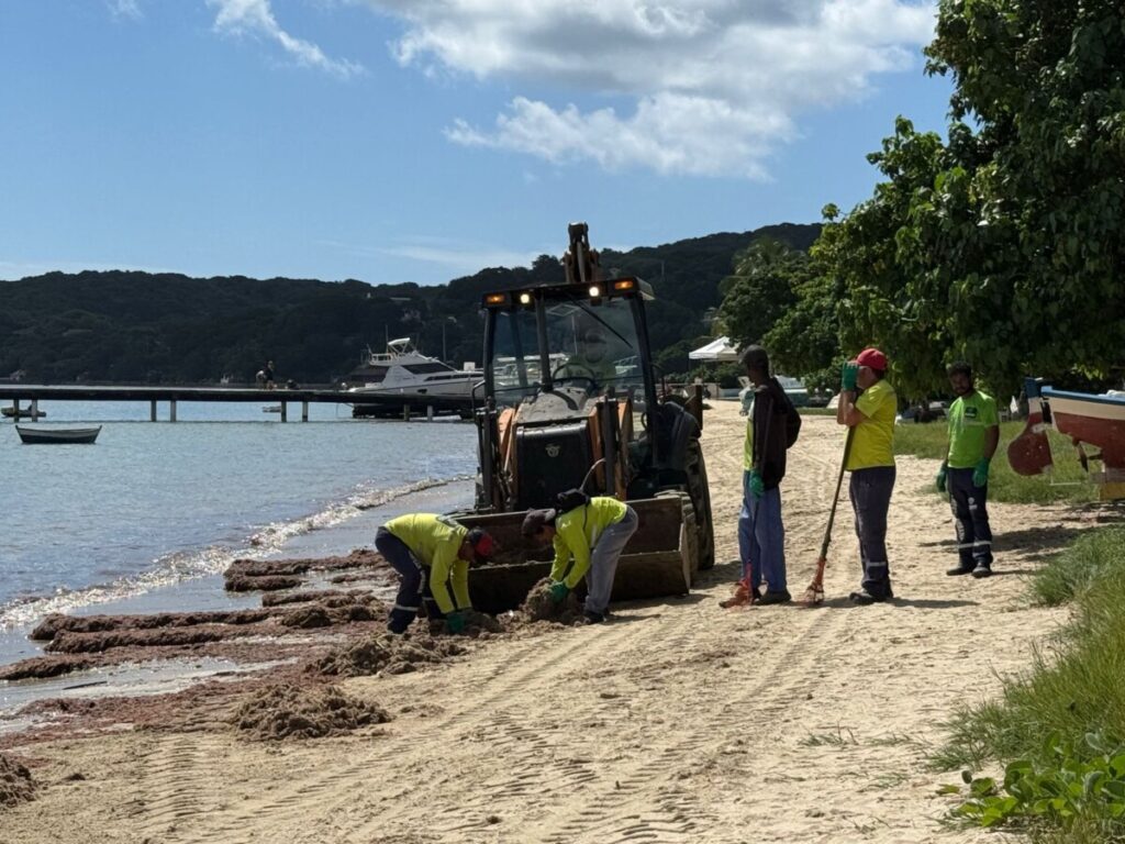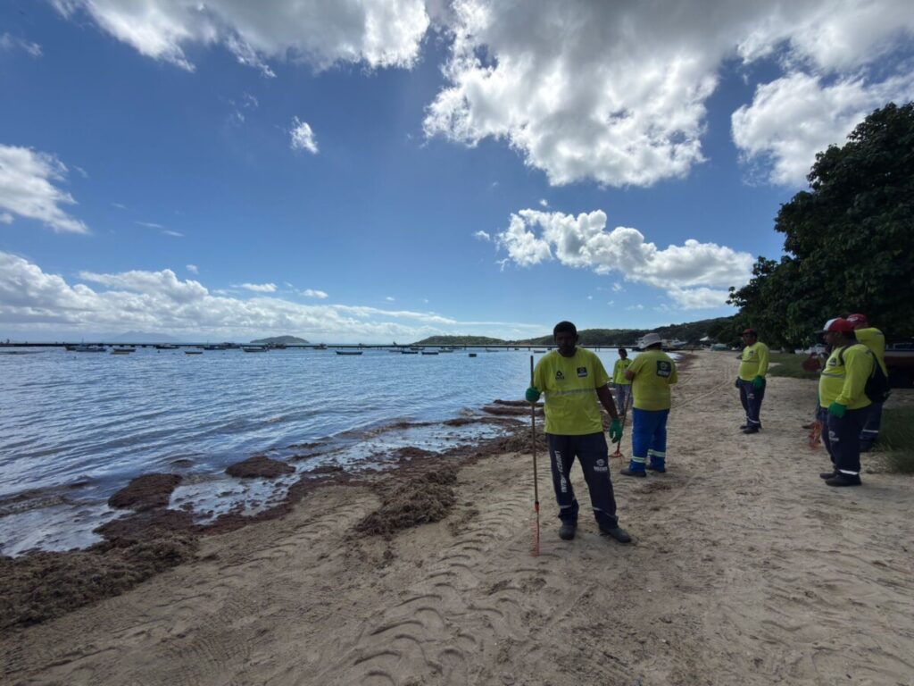 Prefeitura de Búzios realiza mutirão de limpeza de algas na Praia de Manguinhos