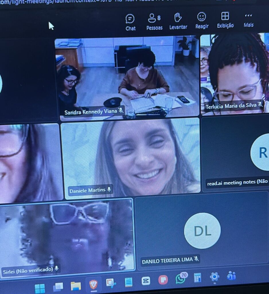 Participaram do encontro a secretária nacional de Articulação Institucional, Ações Temáticas e Participação Política no Ministério das Mulheres, Sandra Kennedy, e a diretora de Proteção de Direitos, Terlúcia Maria da Silva, além da secretária Daniele Martins, a coordenadora da Unidade da Mulher, Karen Coutinho, e a gerente de Igualdade Racial, Sirlei de Souza.