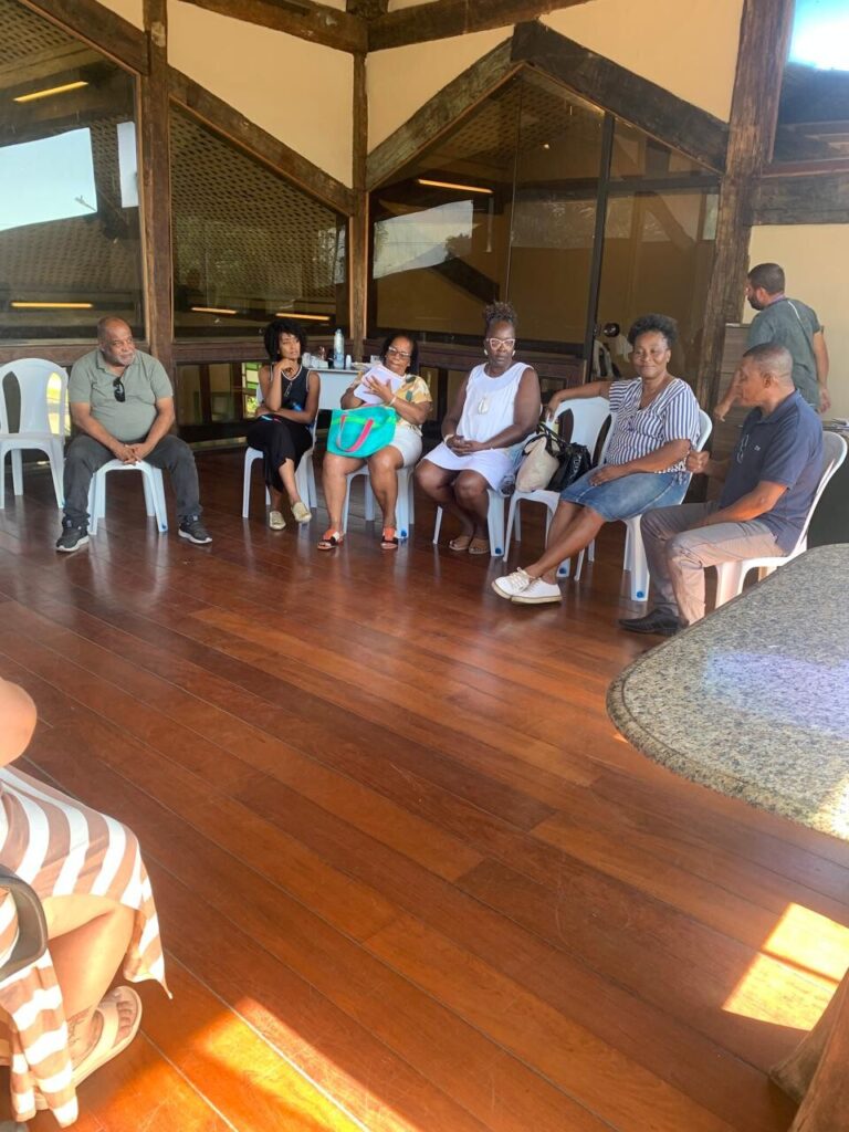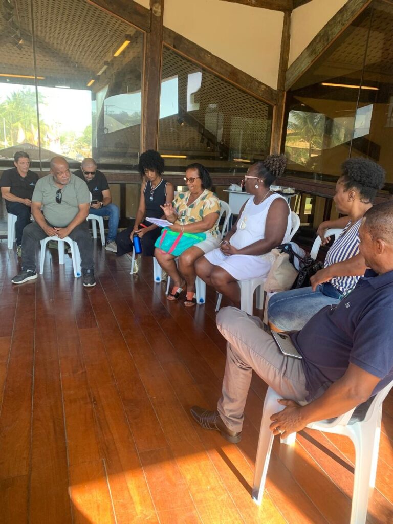 Participaram da reunião o vice-presidente do Quilombo da Rasa, Sra. Cassiane Oliveira; os coordenadores do Quilombo da Rasa, Sr. Valmir Oliveira; do núcleo Zebina, Sr. Ricardo do Bem-Querer; das Caiçaras, Sra. Suzi dos Santos; das Marisqueiras, Sra. Sione dos Santos Barreto; além das representantes da SOMUNEAR, Sras. Maria Augusta Leite e Sirley de Souza. Também estiveram presentes os presidentes do Quilombo da Rasa, Sr. Edu; do Quilombo de Maria Joaquina, Sra. Gabriella Dias; o vice-presidente do Quilombo da Baía Formosa, Sr. Joil Pinto e a presidente da Associação Cultural de Turismo Ético Ecológico do Quilombo da Baía Formosa, Elizabeth Teixeira.